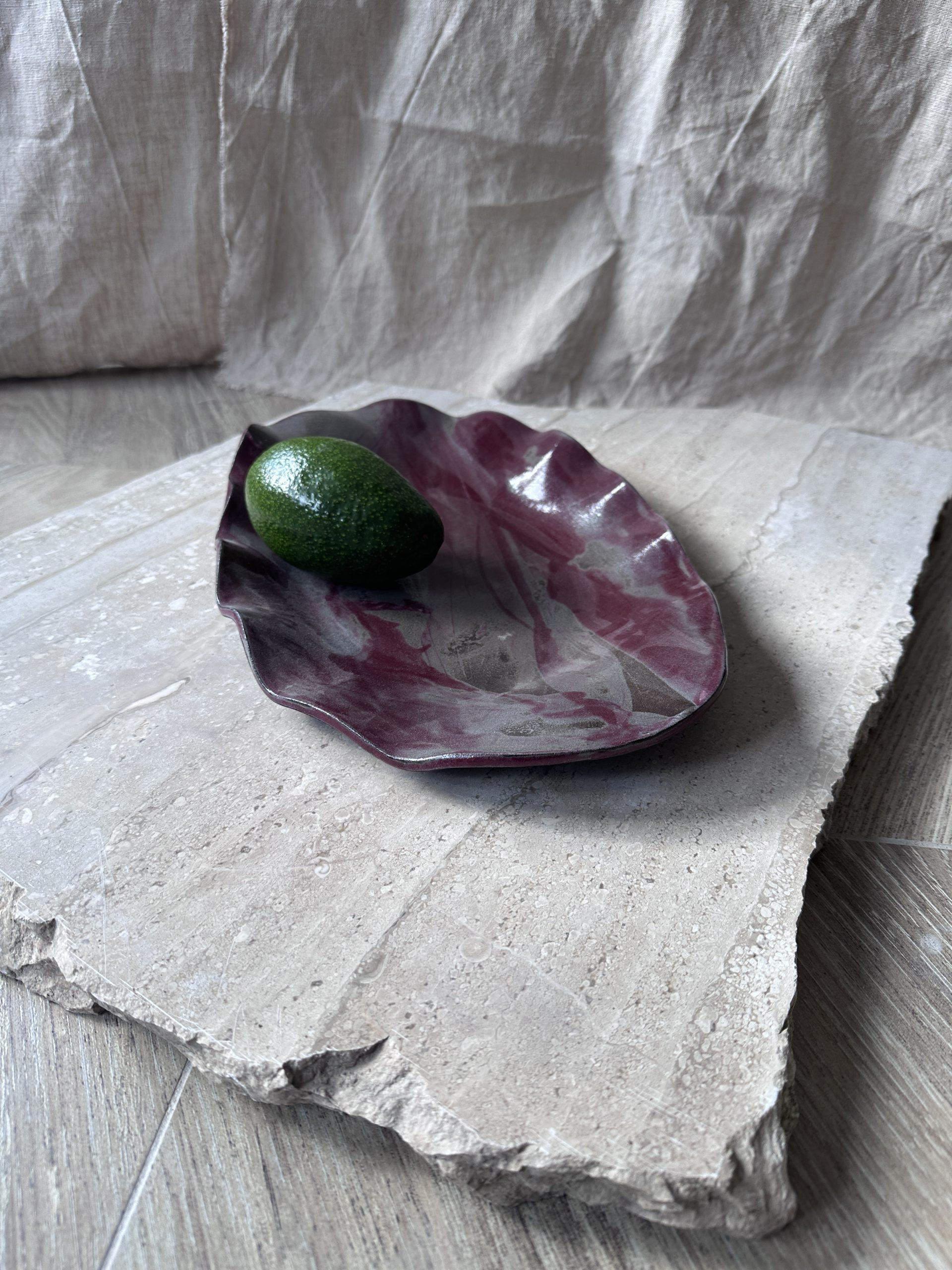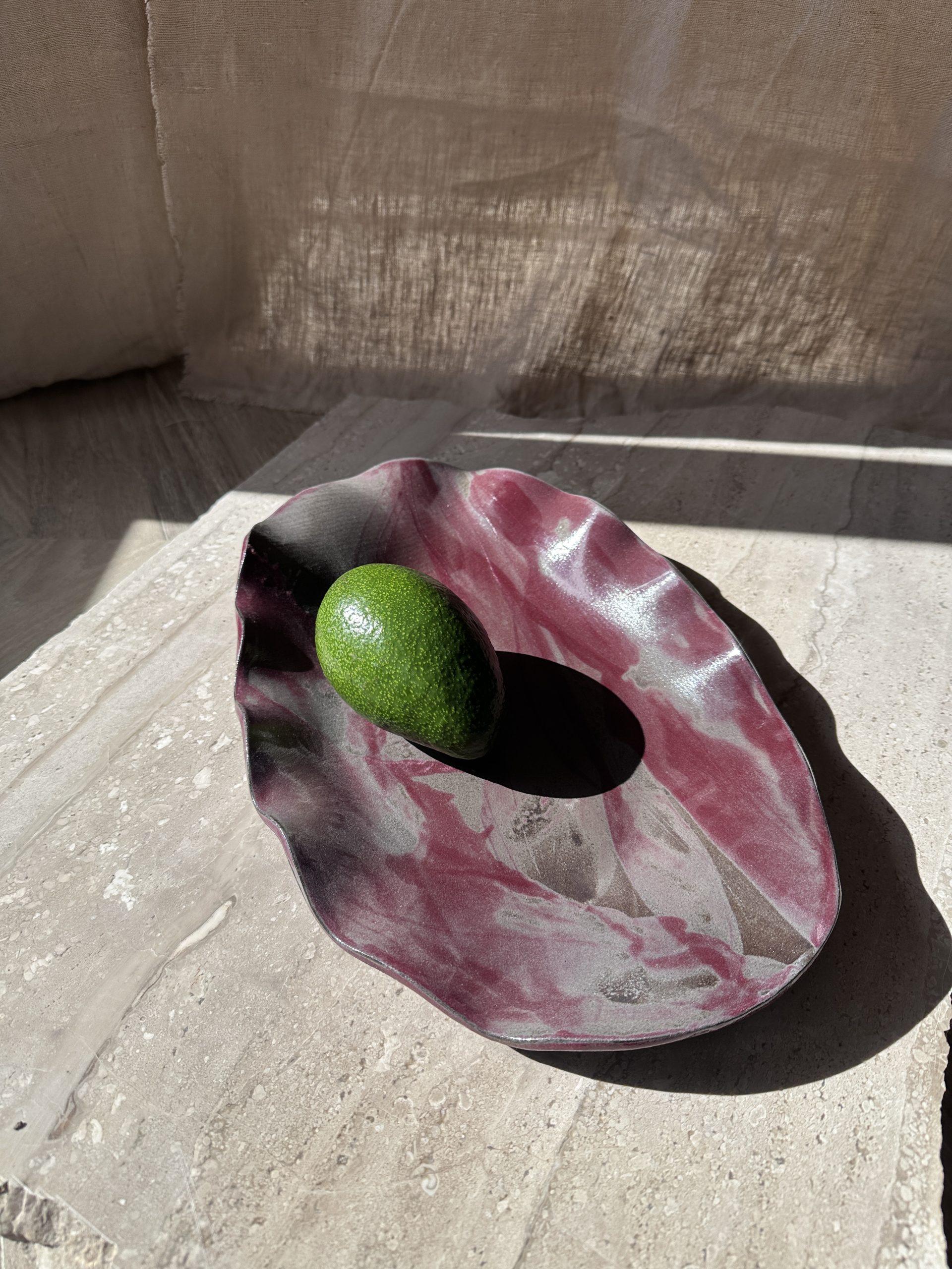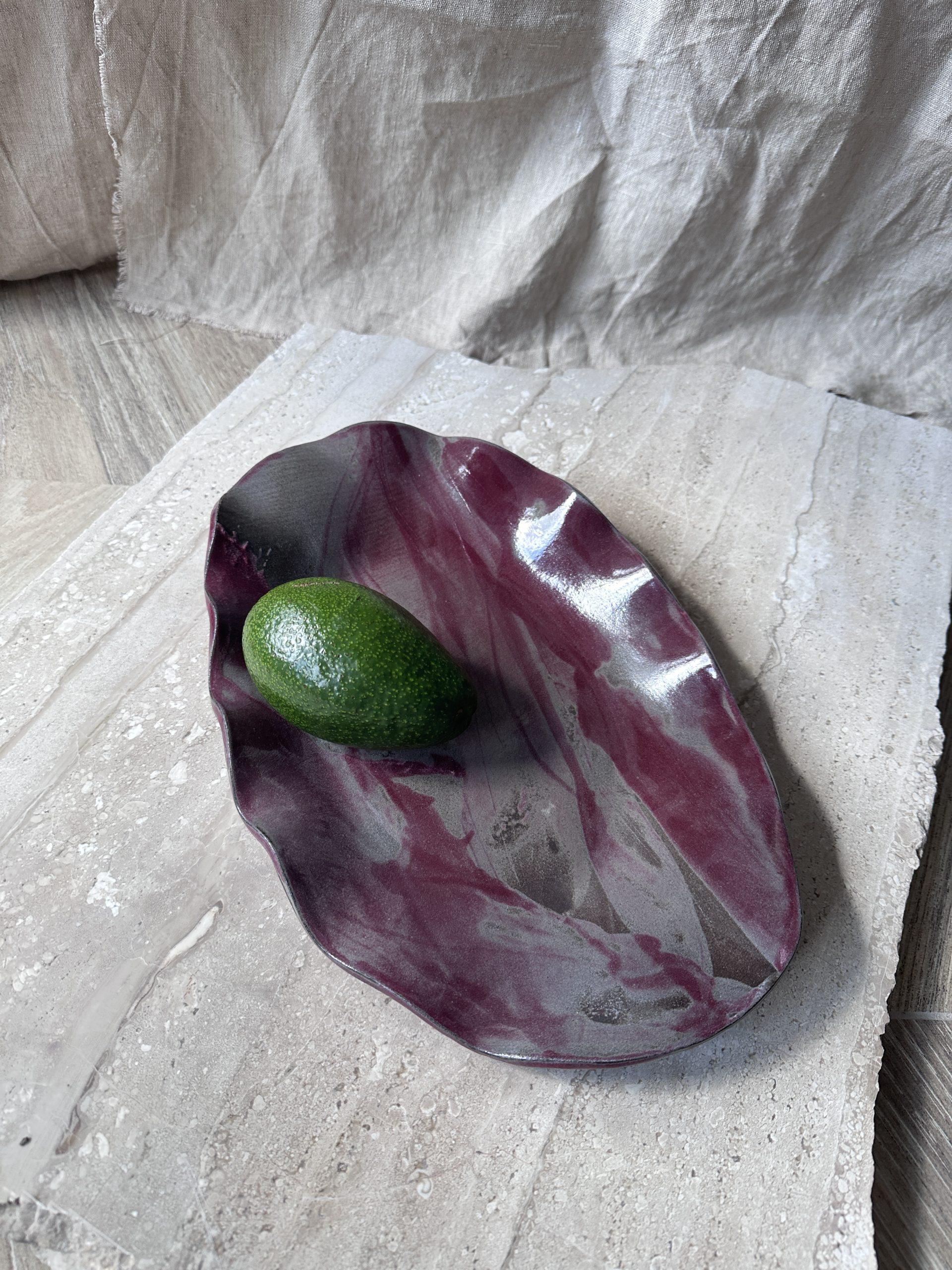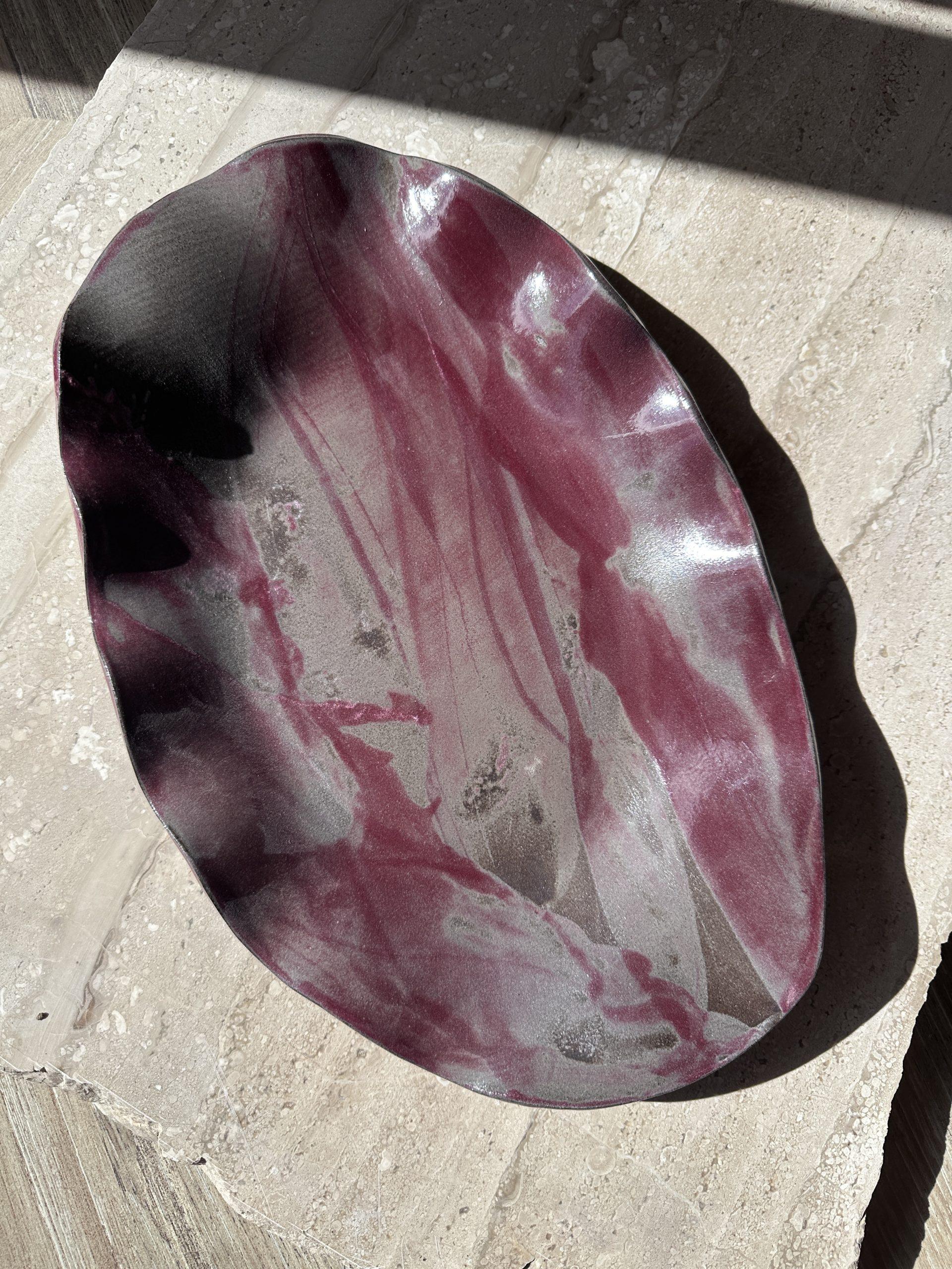 Misa o podłużnym, kształcie w kolorze delikatnego wina i szarości doskonale będzie pasować do nowoczesnych, minimalistycznych wnętrz. Sprawdzi się także jako prezent dla osób ceniących sobie naturalność oraz jako dodatek do wnętrz w stylu boho. Tę piękną misę można wyeksponować na środku stołu i używać jako całorocznej dekoracji, wypełniając ją na przykład owocami.