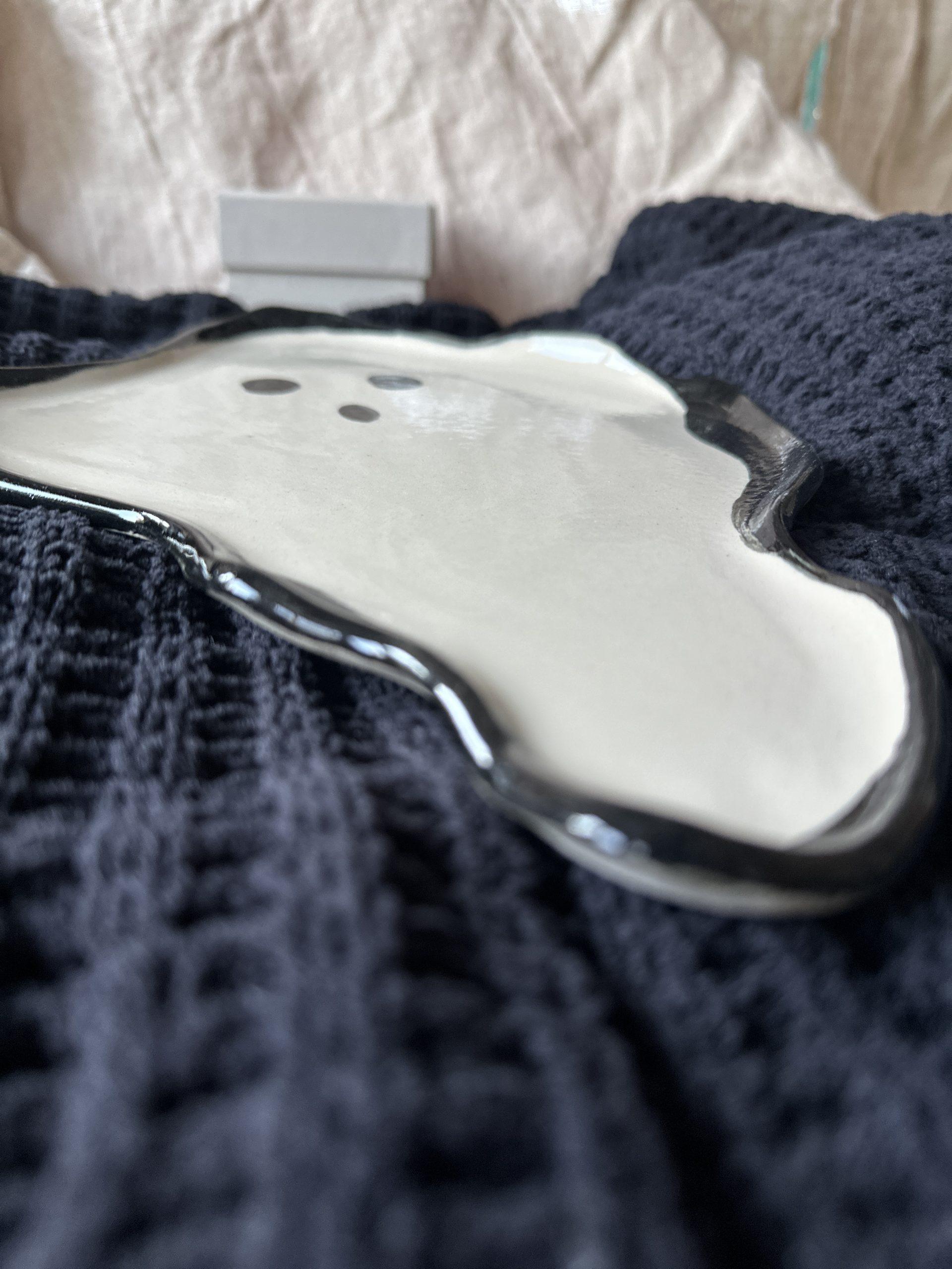 Ręcznie robiony talerz w kształcie duszka ze zdziwioną minką – idealny na jesienne smakołyki, biżuterię lub jako ozdoba. Każdy duszek jest unikalny!